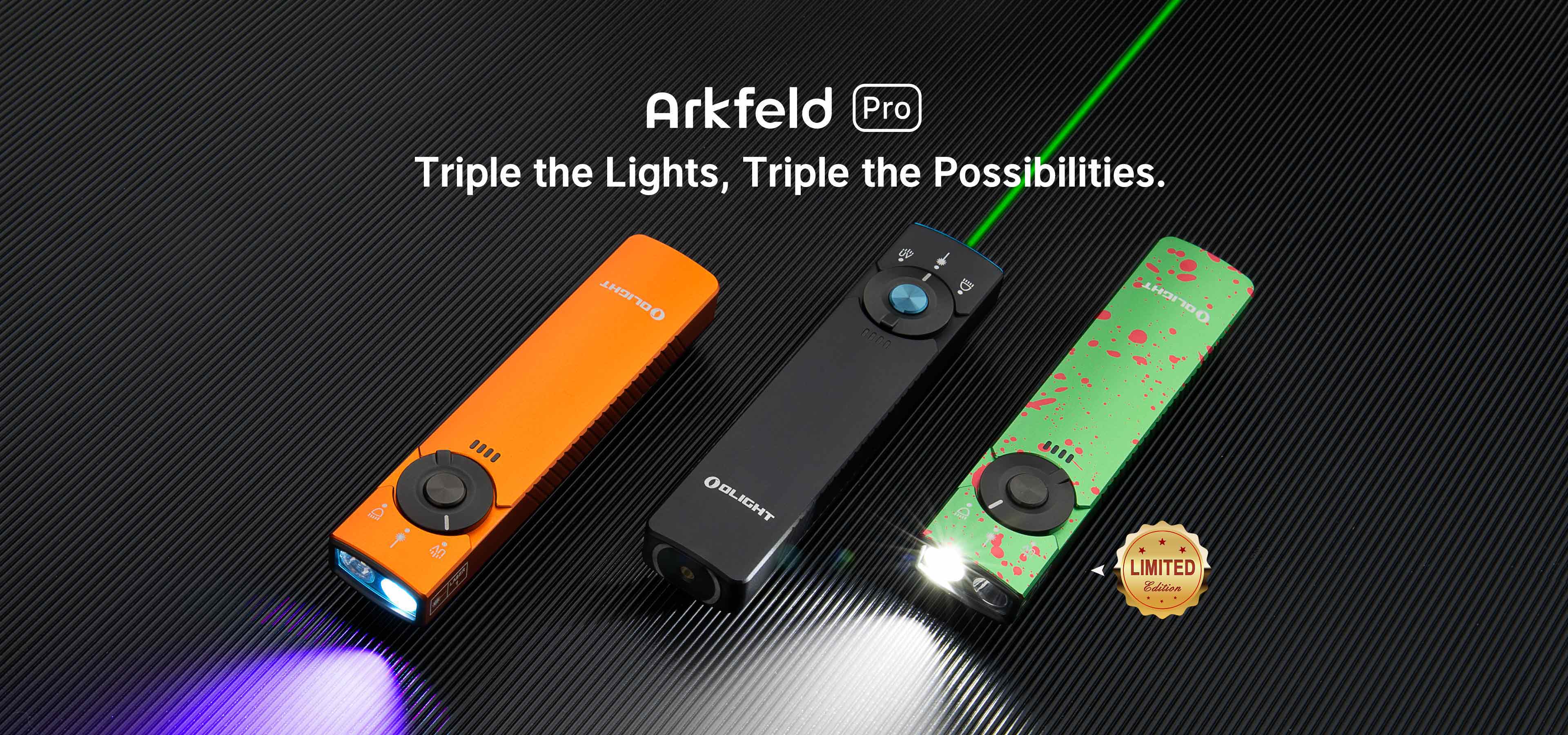 أول مصباح يدوي 3 في 1 من Olight، الفائز بجائزة Red Dot لعام 2024. يتميز بالأشعة فوق البنفسجية بقوة 900 مللي واط، والليزر الأخضر بقوة 5 مللي واط، و1300 لومن من الضوء الأبيض.