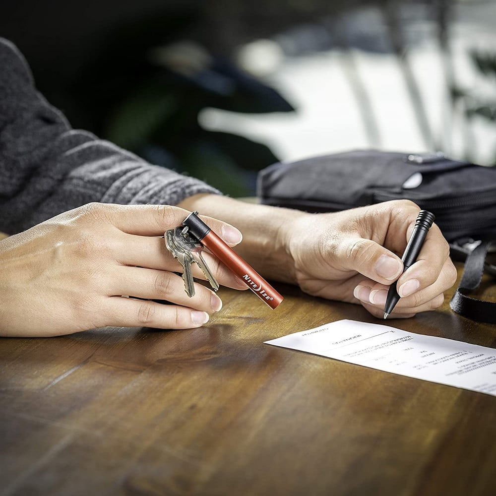 قلم مع علاقة مفاتيح مدمجة يمتاز بخفة الوزن و صغر الحجم. يمكن اعادة تعبئة القلم بالحبر ومضاد للماء